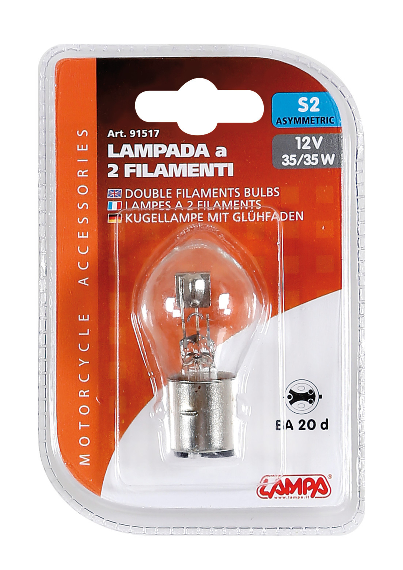 - LAMOT91517, Descriere: Bec halogen 12V - S2 - 35/35W soclu metal asimetric BA20d 1buc., Bucati per pachet: 1, Volti: 12V, Lampa: S2 asimetric, Wati: 35/35W, Dulie: BA20d,
