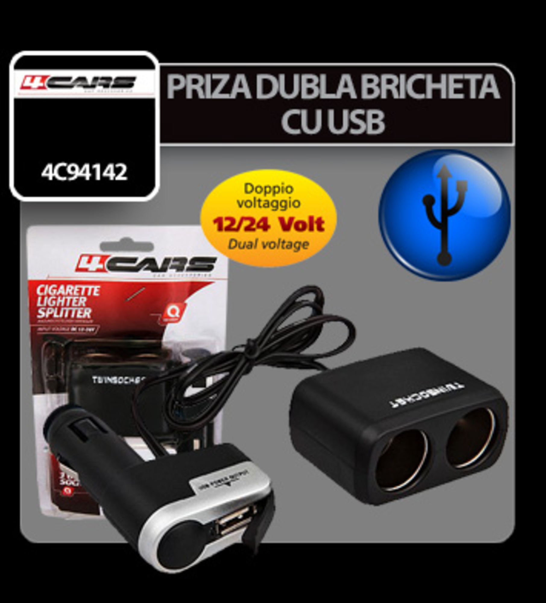 Cumpara Priza dubla bricheta cu usb 12/24v 4cars 4C94142
