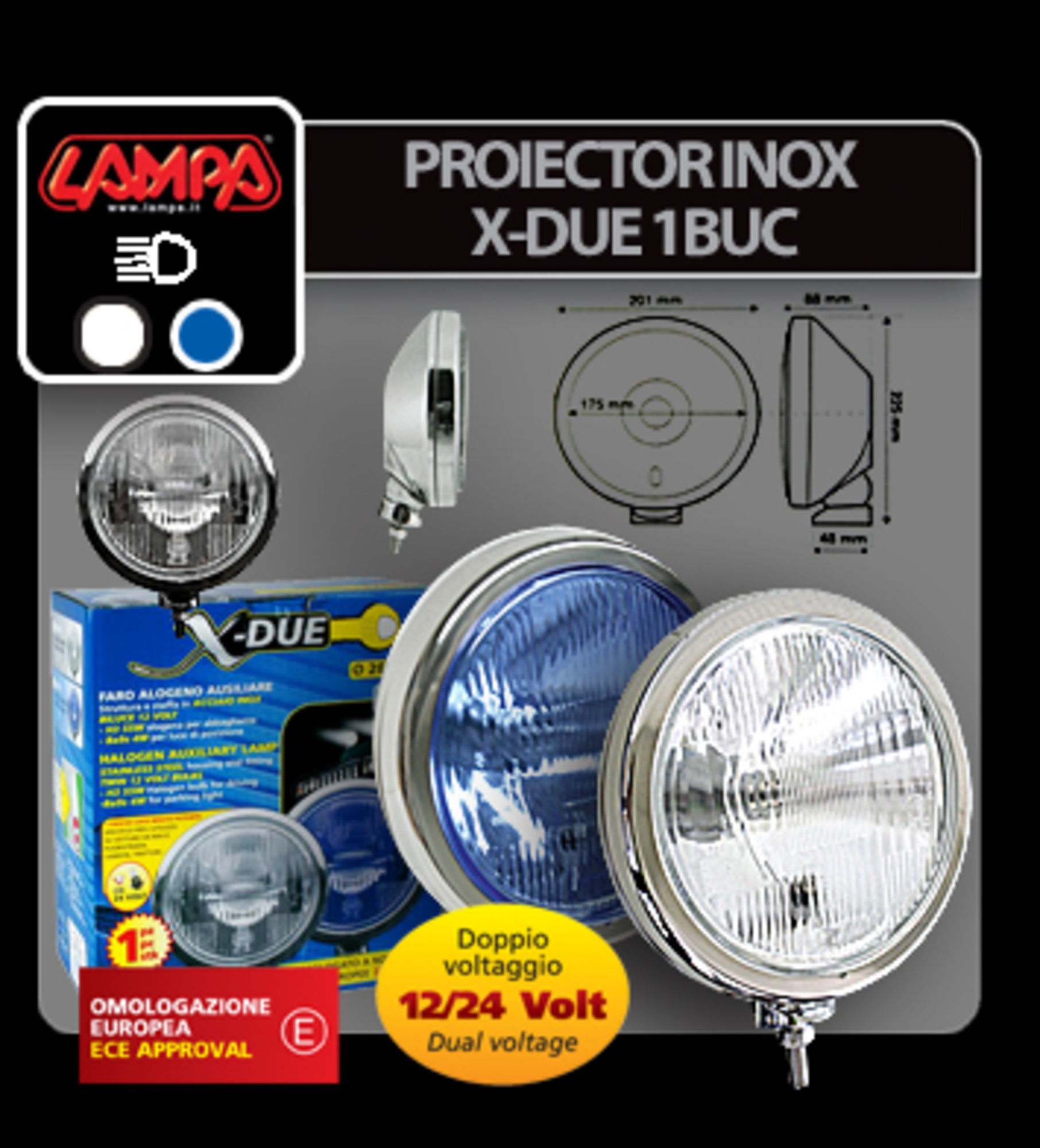 - LAM72201 CULOARE: ALB, Descriere: Carcasa din otel inoxidabil, proiectorul este aprobat in Statele Unite si Europa. Livrat cu becuri H3 de 55W si bec de pozitie T4W - de asemenea se pot monta becuri de putere ridicata de la 55W la 150W (12V sau 24V), Bucati pe ambalaj: 1, Aprobare: E1-1708, Bec: H3, Volti: 12/24V, Wati: 55/150W,