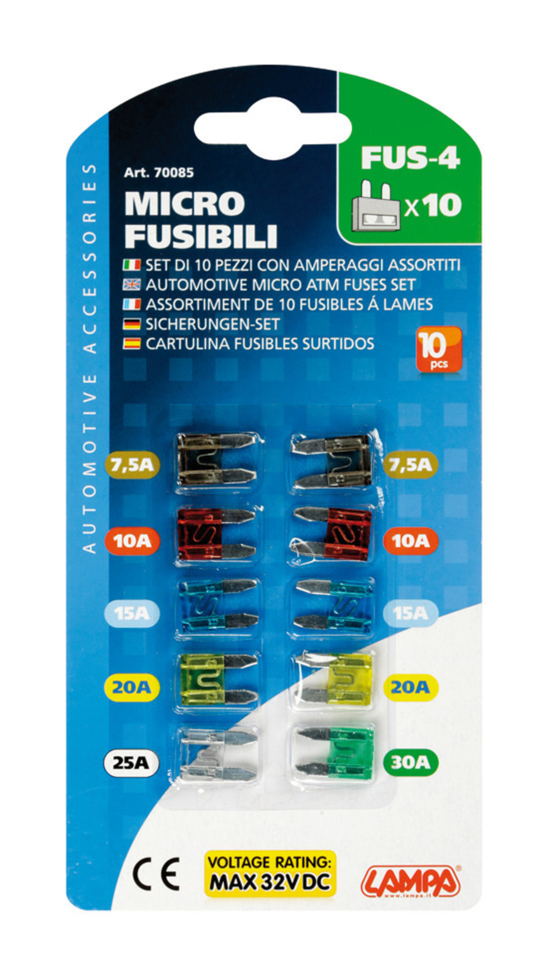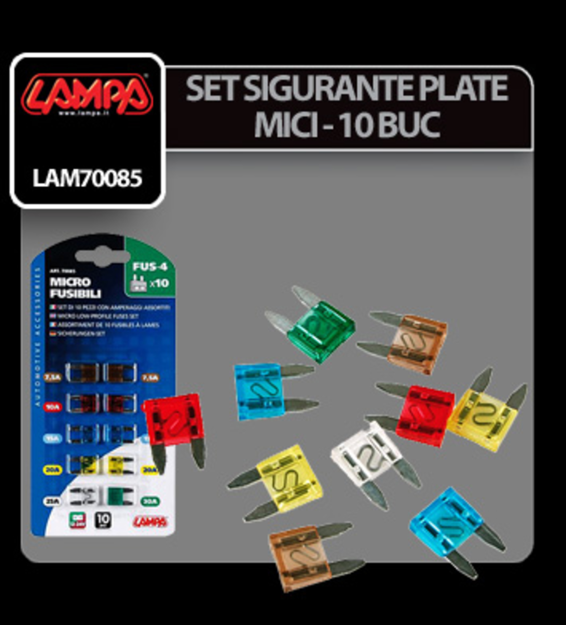 - LAM70085, Descriere: Setul de sigurante plate mici este compus din urmatoarele puteri:, 2 buc x 7,5A - 2 buc x 10A - 2 buc x 15A - 2 buc x 20A - 1 buc x 25A - 1 buc x 30A, ,