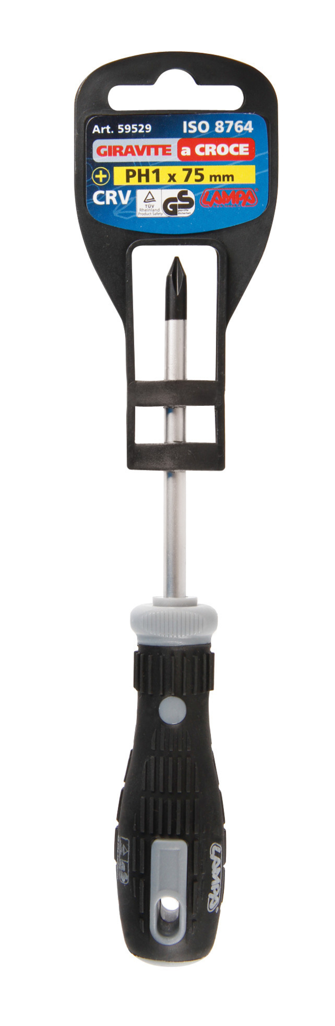 - LAM59529, Descriere: Surubelnita confectionata din otel crom vanadiu iar prinderea bi-componenta moale., Dimensiuni: (+) PH1x75 mm.,